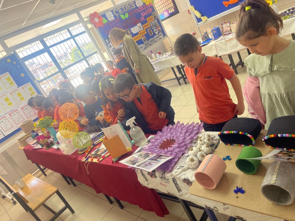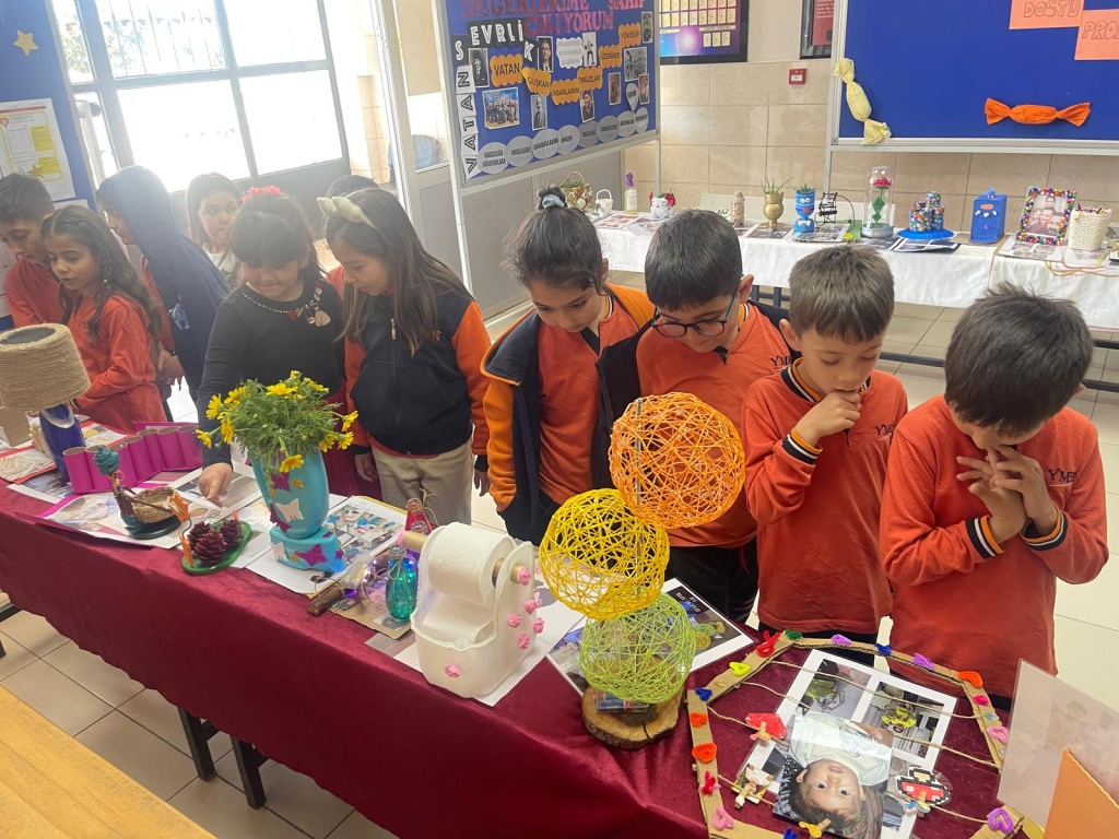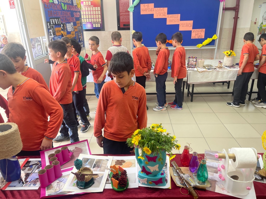 Yaşam Becerileri Etkinliğimizde Geri Dönüşüm Bilinci Kazanıldı. Okulumuzda gerçekleştirilen Yaşam Becerileri Etkinliği kapsamında öğrencilerimize çevre bilinci kazandırmak, atık yönetimi konusunda farkındalık oluşturmak ve geri dönüşümün önemini kavratmak amacıyla çeşitli etkinlikler düzenlendi. Öğrencilerimiz, evlerinde kendi geri dönüşüm kutularını oluşturarak atıklarını ayrıştırmayı öğrendiler. Öğretmenlerimiz, öğrencilere hangi atıkların geri dönüştürülebileceği, bu atıkların nasıl ayrıştırılacağı ve geri dönüşümün çevreye olan olumlu etkileri hakkında bilgilendirici sunumlar gerçekleştirdi. Etkinliğin yaratıcı ayağında ise öğrenciler, geri dönüşüm malzemelerini kullanarak birbirinden özgün ve anlamlı sanat eserleri tasarladılar. Bu çalışmalar hem öğrencilerimizin el becerilerini geliştirdi hem de çevreye duyarlı bireyler olarak sorumluluk almalarını sağladı. Geleceğe daha temiz ve yaşanabilir bir dünya bırakma yolunda atılan bu küçük ama anlamlı adımlarla öğrencilerimiz çevreye duyarlılık konusunda örnek oldular. Katılım gösteren tüm öğrencilerimize ve rehberlik eden öğretmenlerimize teşekkür ederiz.