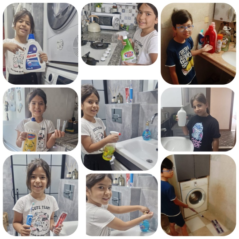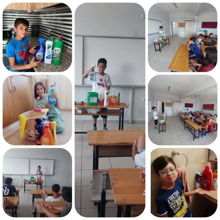 Etkinlikte öğrenciler, büyüklerinin rehberliğinde temizlik malzemelerinin doğru ve güvenli kullanımı konusunda bilgi edindiler. Öğrendiklerini arkadaşlarıyla paylaşarak farkındalığın yayılmasına katkı sağladılar.